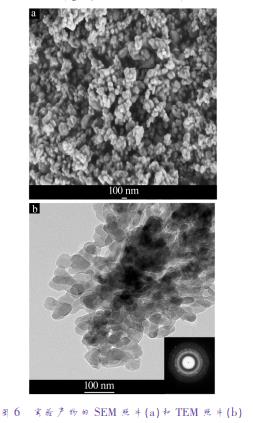 圖6分別為實驗產物的SEM和TEM照片。由圖6a可以看到,粉末為均勻的粒狀產品,無塊狀產物出現。從圖6b可見,產物為粒狀顆粒,大小尺寸均小于100nm,其SAED圖可看到多個同心圓的衍射環(huán),說明納米磷酸鋅是一結晶性良好的多晶結構。